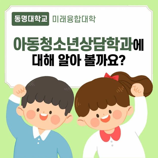 동명대학교 대외홍보대사 & e-홍보대사가 알려주는 미래융합대학 아동청소년상담학과 카드뉴스 입니다.💚🍃