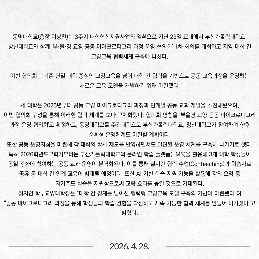 부·울·경 3개 대학, 교양 공동 마이크로디그리 운영 본격화