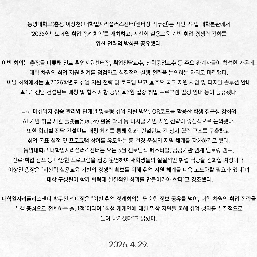동명대, 취업 경쟁력 강화 위한 전략회의 개최
